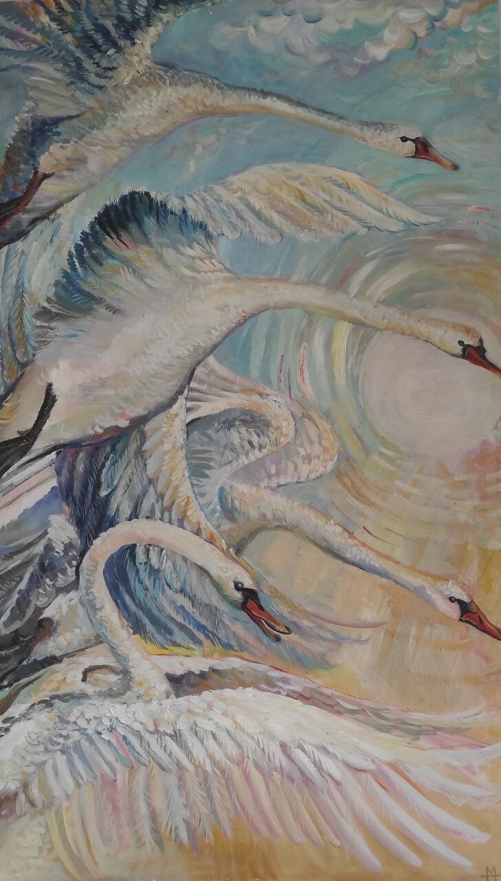 "Лебеди" или "Домой, в родные края". Нежная картина легко впишется в современный интерьер
